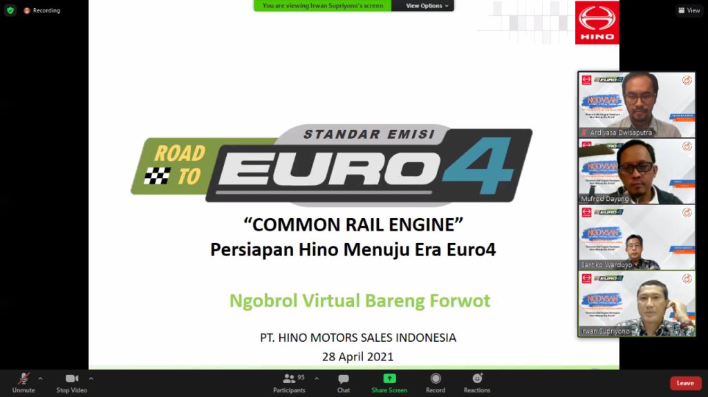 Santiko Wardoyo Chief Operating Officer (COO) – Director HMSI mengatakan “Hino Ranger dan Hino Bus untuk beberapa model sudah mengadopsi teknologi common rail, dan hasilnya cukup baik dan diterima menjadi andalan para konsumen dalam menjalankan bisnisnya disini. Untuk itu ini menjadi bukti bahwa kendaraan kami dapat diandalkan termasuk nanti saat era Euro4 tiba”.